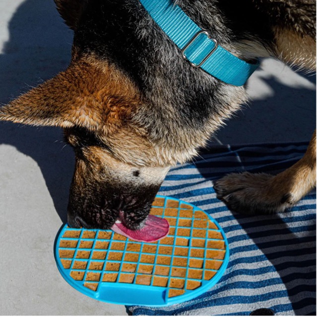 Superficies de silicona para extender alimento húmedo o yogur canino. Útiles para asociar higiene y calma (cepillado, limpieza de patas). Sesiones cortas y retirada antes de que pierda interés.